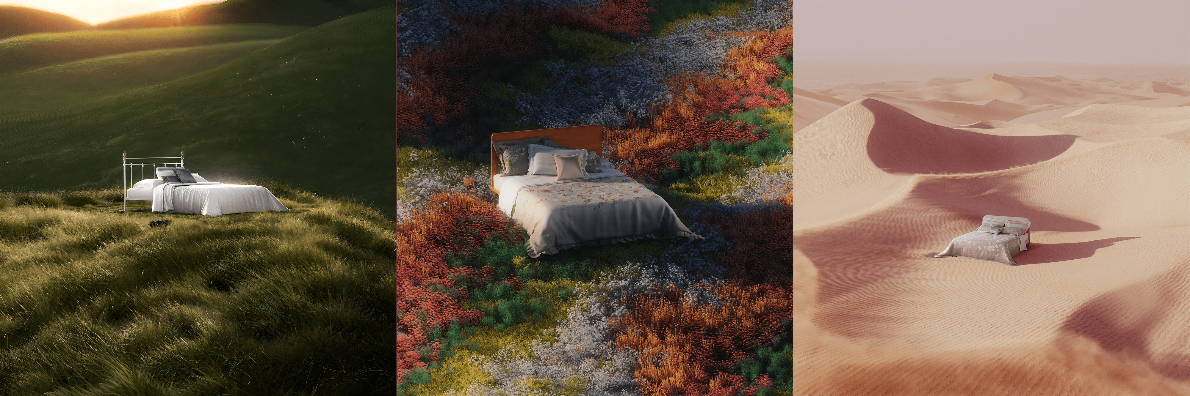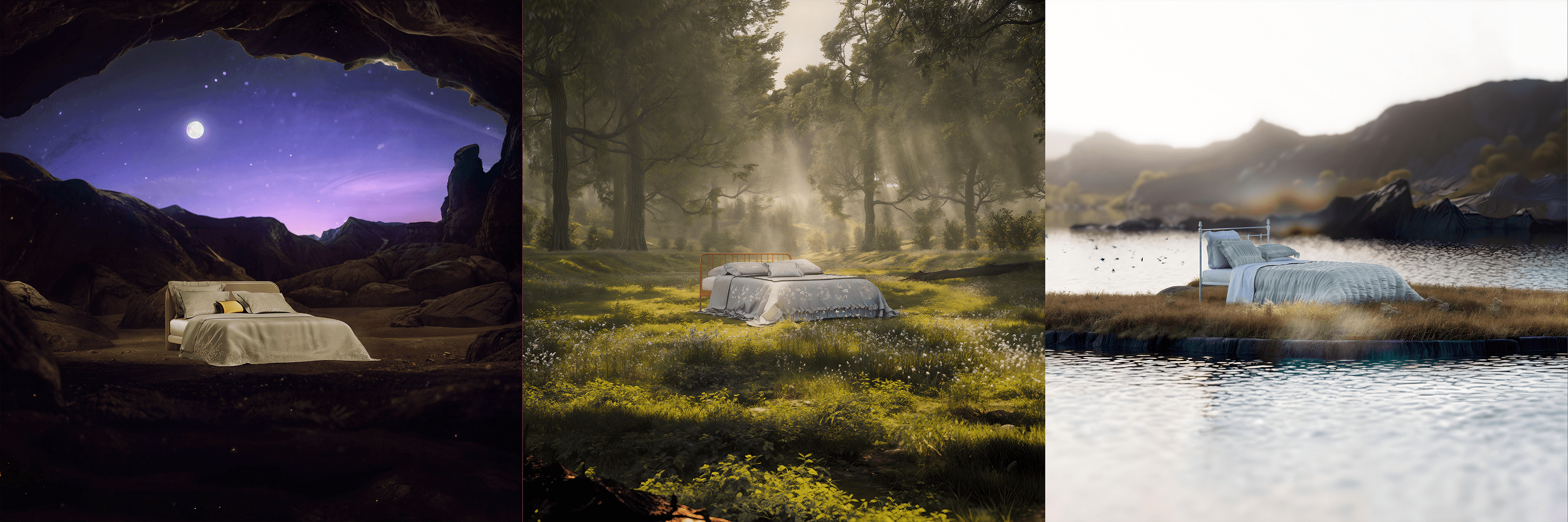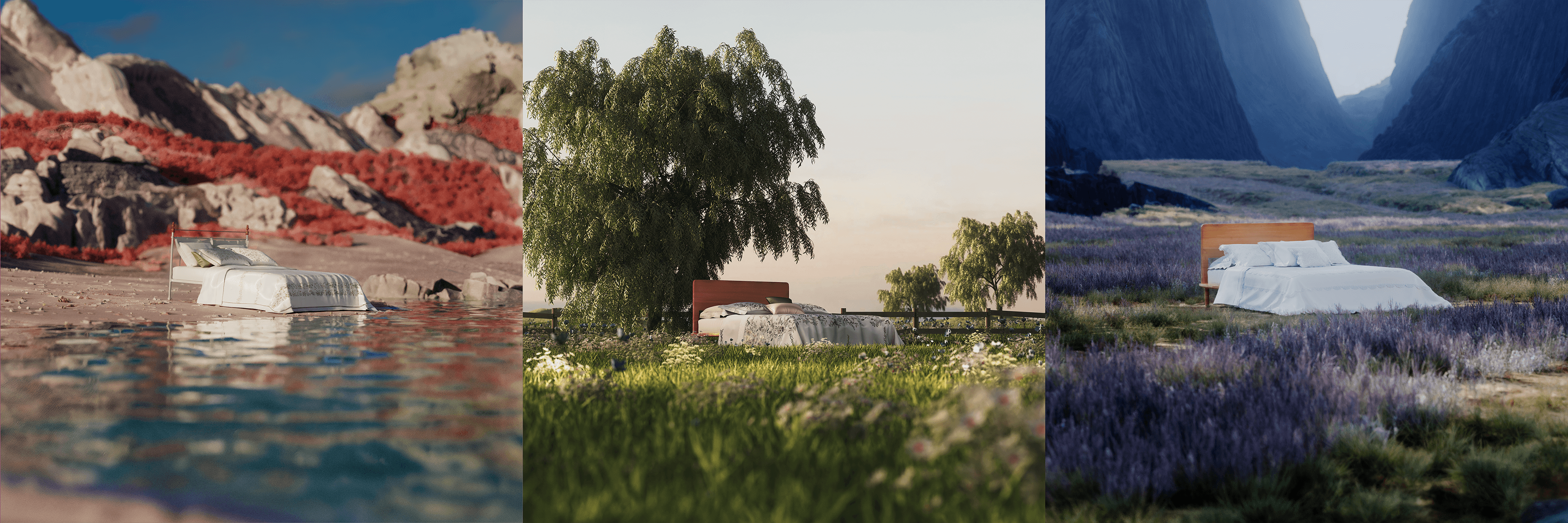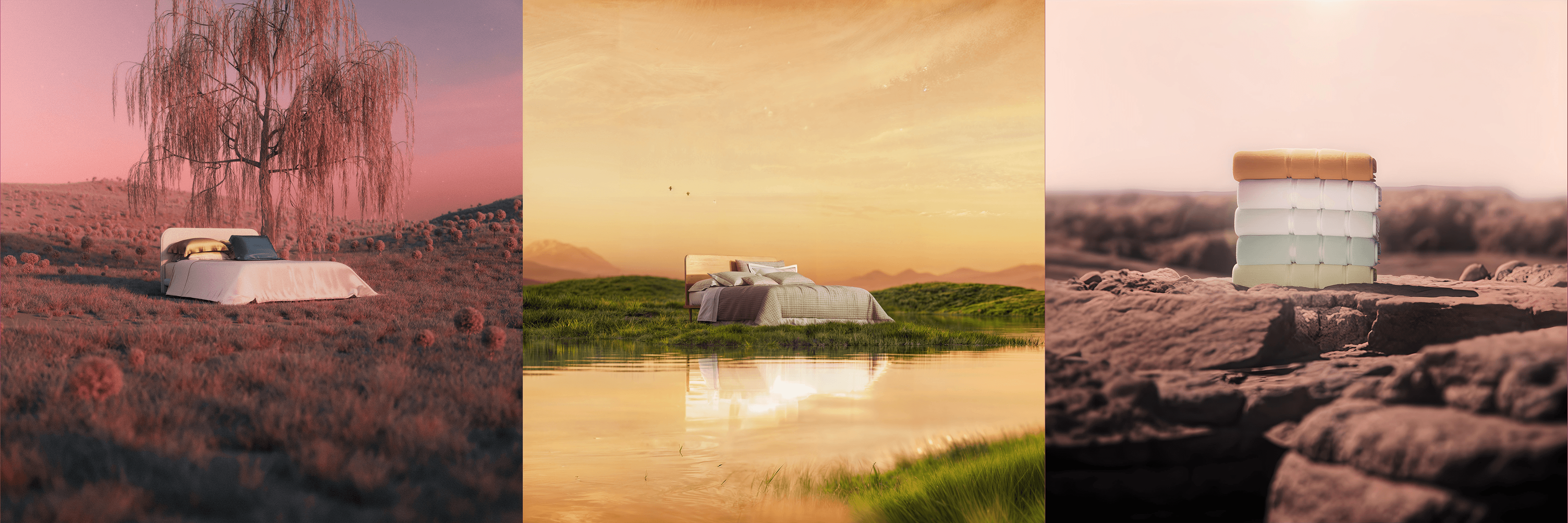 Work created for Buddemeyer’s campaign launching the company’s new bedding collection. The goal of the project was to faithfully replicate in 3D a total of 11 beds and 1 towel set, covering both modeling and lookdev. In this project, I worked as a 3D modeler, refining the models created by the Marvelous Designer team. I also served as Lead Texture Artist, managing the texturing team and working closely with the Lookdev team