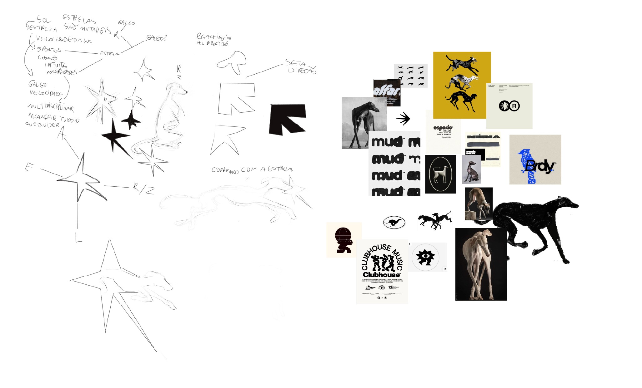 I wanted the logo to be something striking, but that also represented me, and above all contained my initial "R", both from my personal name and my pseudonym. Throughout this process I came to understand that the star archetype could represent many of my characteristics, such as movement, plurality and expansion. Together with the symbol of the Greyhound (dog), which represents speed, agility and discipline.